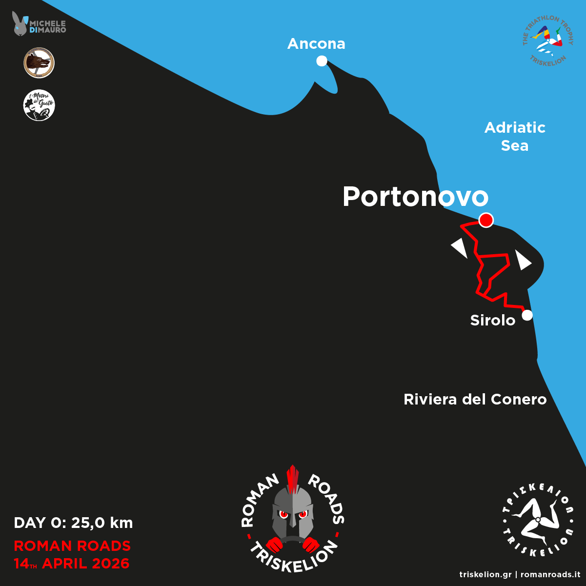 | Tuesday | 14th Apr | SeeBay Hotel Portonovo **** | 18:30 | 37,00 km | Ristorante Fortino Napoleonico | 19:30 | Welcome Dinner |