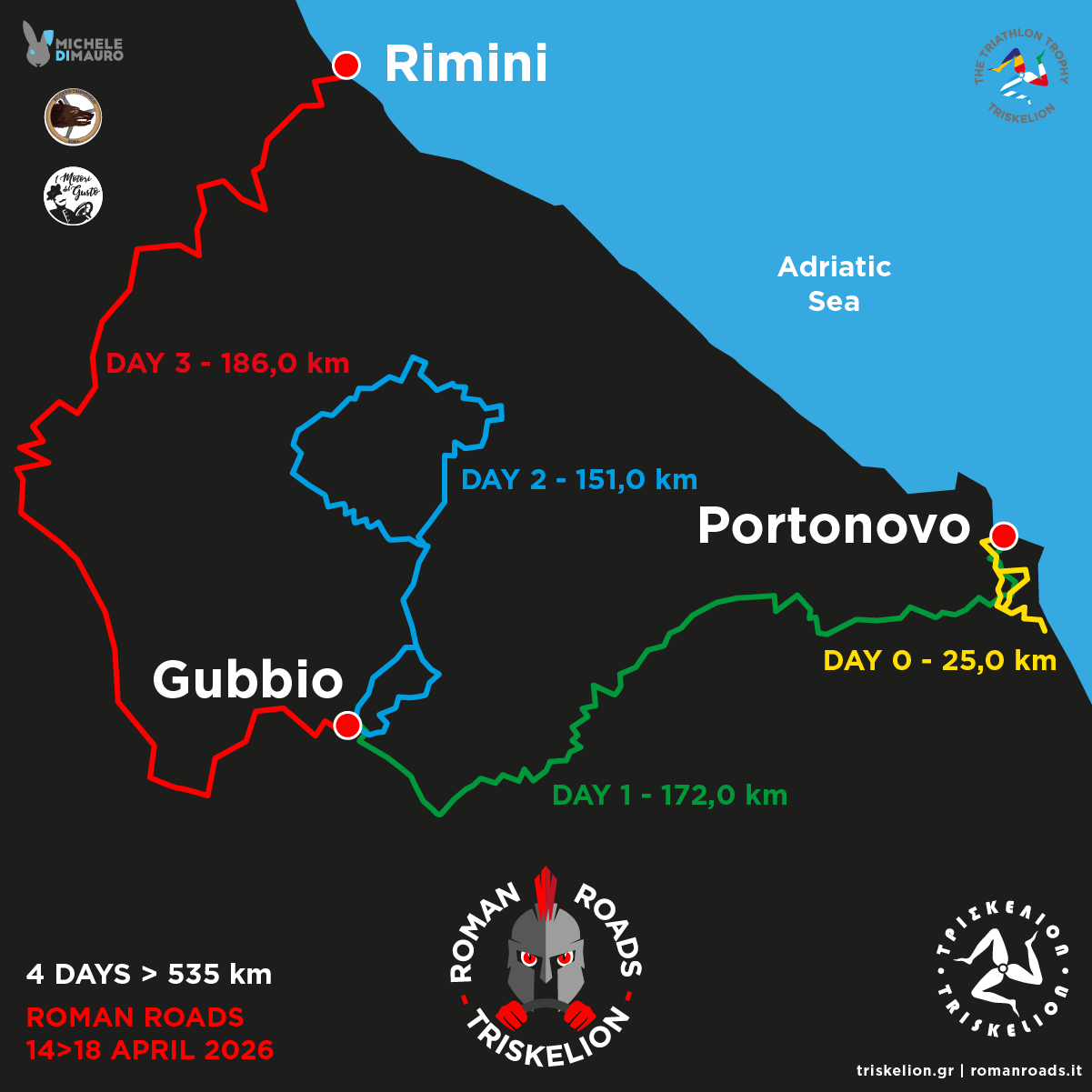 | Friday | 17th Apr | San Marino | 19:30 | 30,00 km | Grand Hotel Rimini | 20:00 | Gala dinner – Prize Giving Ceremony (included in the E.F.) |